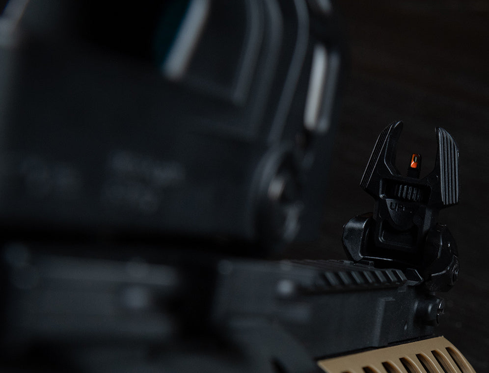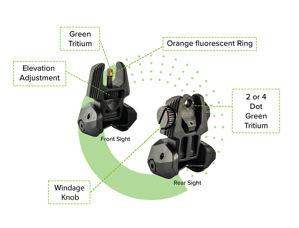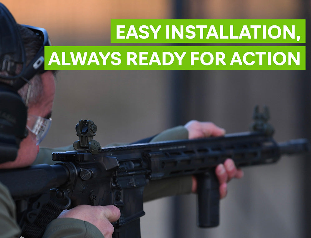 Itsevalaisevat etu- ja takatähtäimet on suunniteltu tarjoamaan ampujalle toissijaiset tähtäimet, jos ensisijainen optiikka menee alas. Lisäksi etutähtäinpylvään korkeutta on helppo säätää ilman työkaluja.